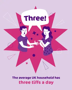With each one lasting just under four and a half minutes on average, 10 more arguments is the equivalent of approximately half a football match spent bickering every day! If you do find yourself bickering more than usual with your household, take a look at our guide on resolving conflict at home.